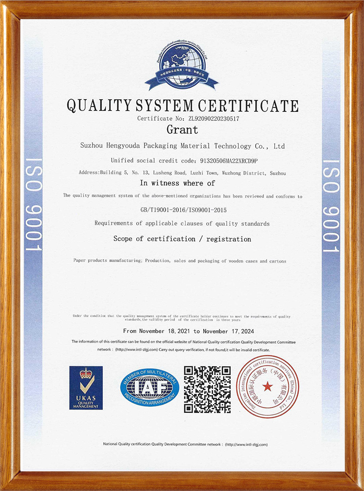蘇州恒優(yōu)達包裝材料科技有限公司位于蘇州吳中區(qū)甪直古鎮(zhèn),靠近滬寧高速、滬寧鐵路,靠近昆山,上海,蘇州工業(yè)園區(qū)等,交通十分便捷。公司占地面積1500平方米,擁有員工18余人,其中專業(yè)技術(shù)人員10名。我公司是一家專業(yè)生產(chǎn)包材:瓦楞紙板、紙箱、紙托盤、木箱、木托盤、泡棉的企業(yè)。